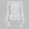 Witte Off Shoulder Blouse met Lange Uitlopende Mouwen