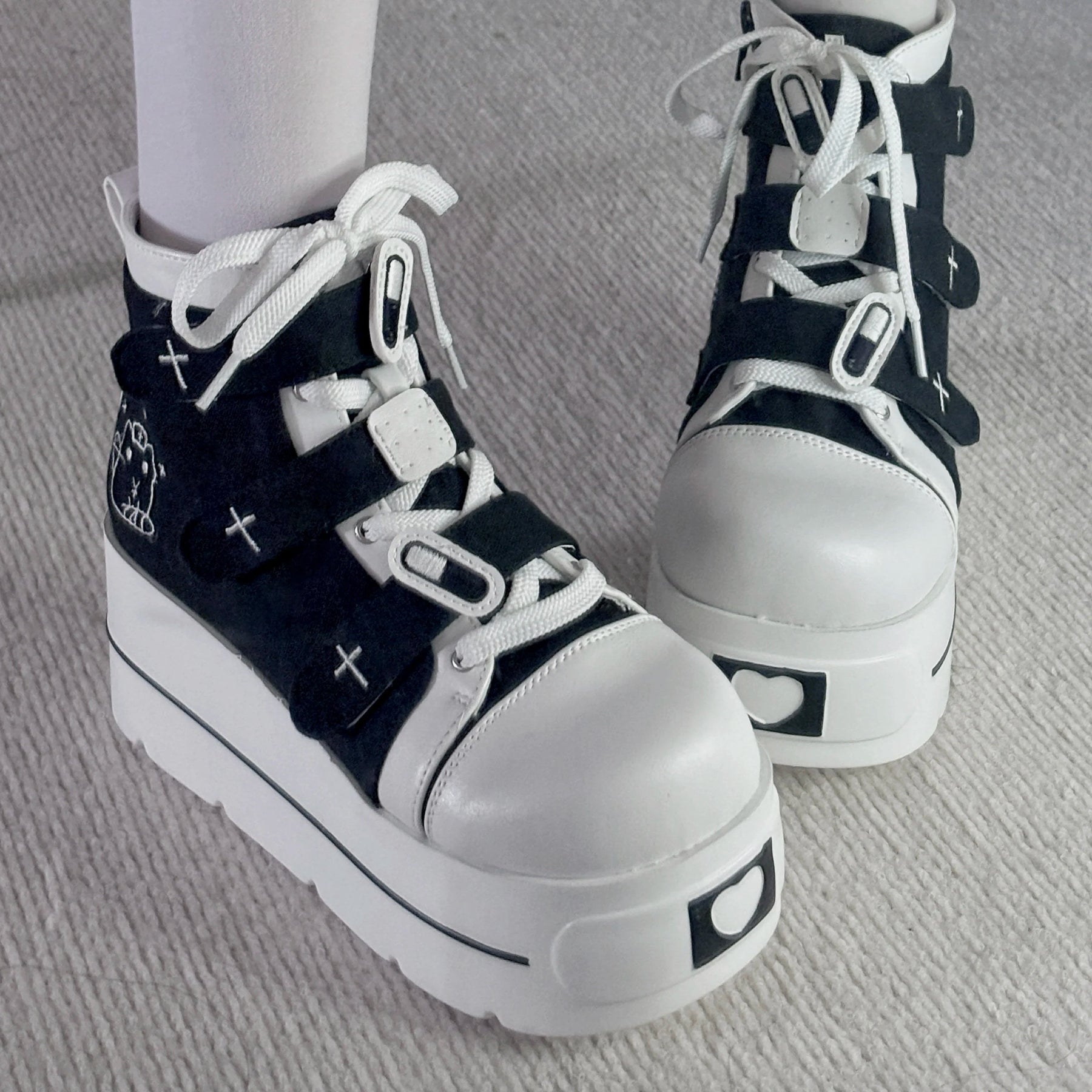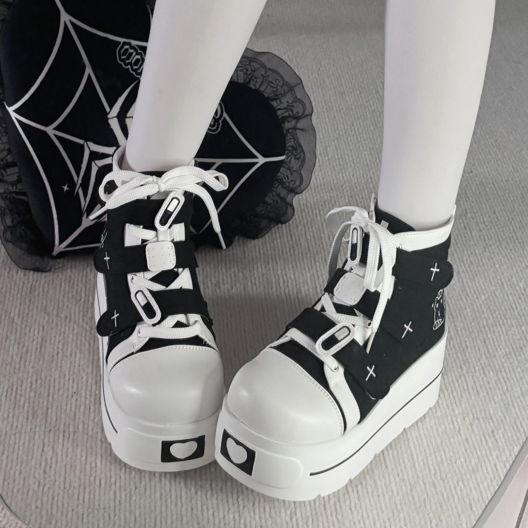 Witte Platformen met Veiligheidsspelden en Hartjes Jirai Kei