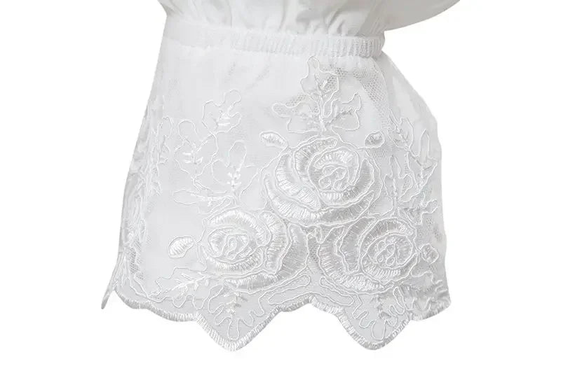 Witte Rock Blouse met Kanten Manchetten en Jabot