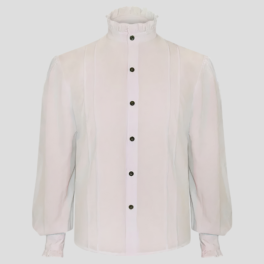 Witte Steampunk Overhemd met Hoge Punk Kraag