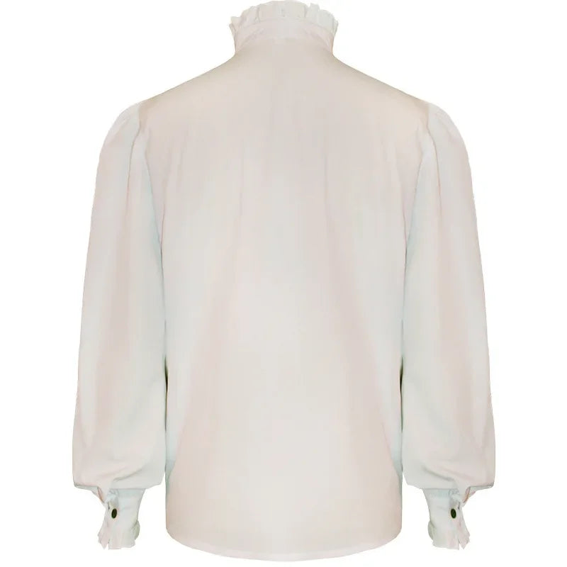 Witte Steampunk Blouse met Hoge Punk Kraag