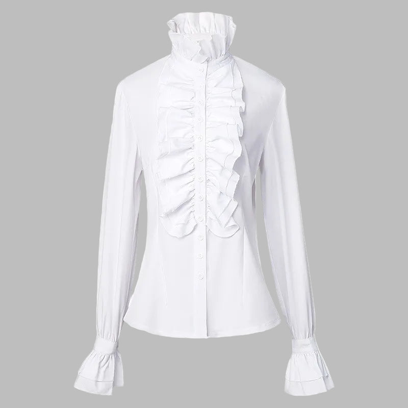 Witte Steampunk Blouse met Jabots en Pofmouwen Bekijk opties
