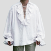 Biała Koszula Steampunk z Wiązaniem i Koronkowymi Mankietami