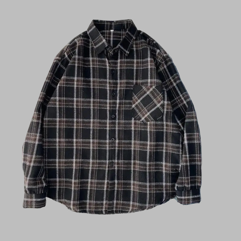 Zwart Geruite Grunge Punk Overhemd met Lange Mouwen