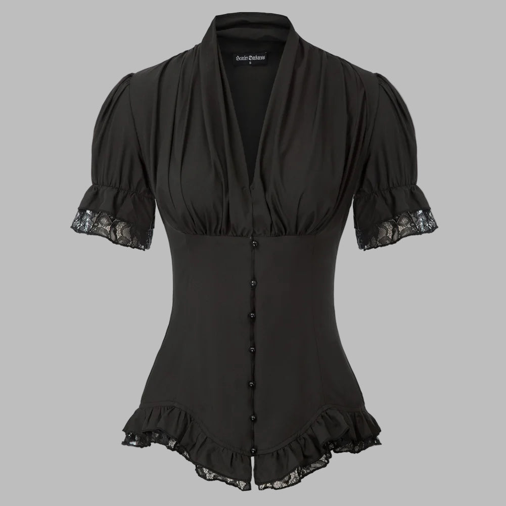 Zwart Metalen Blouse met Kant en Korte Mouwen Bekijk opties