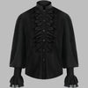 Zwart Metalen Overhemd met Kanten Jabots en Manchetten