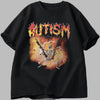 Zwart Oversized T-shirt Metal Autism met Schedel en Vuur