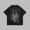 Zwart Metal T-shirt met Kathedraalprint en Ornamenten