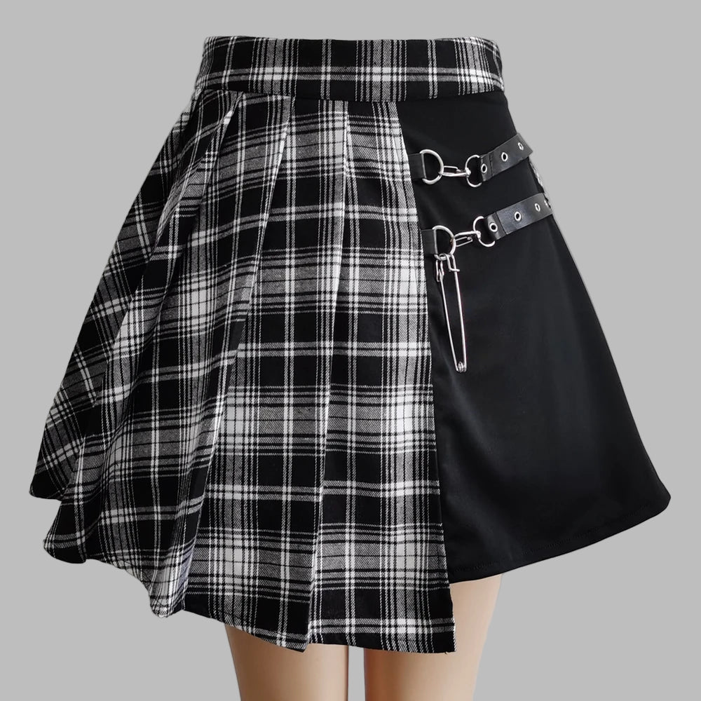 Zwart-witte Grunge Punk Rock Rok met Riemen en Studs
