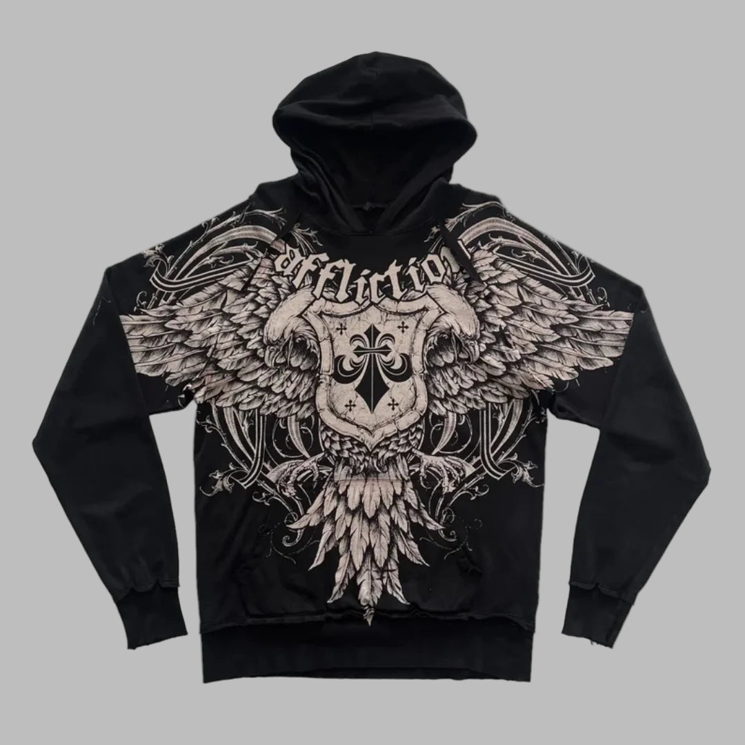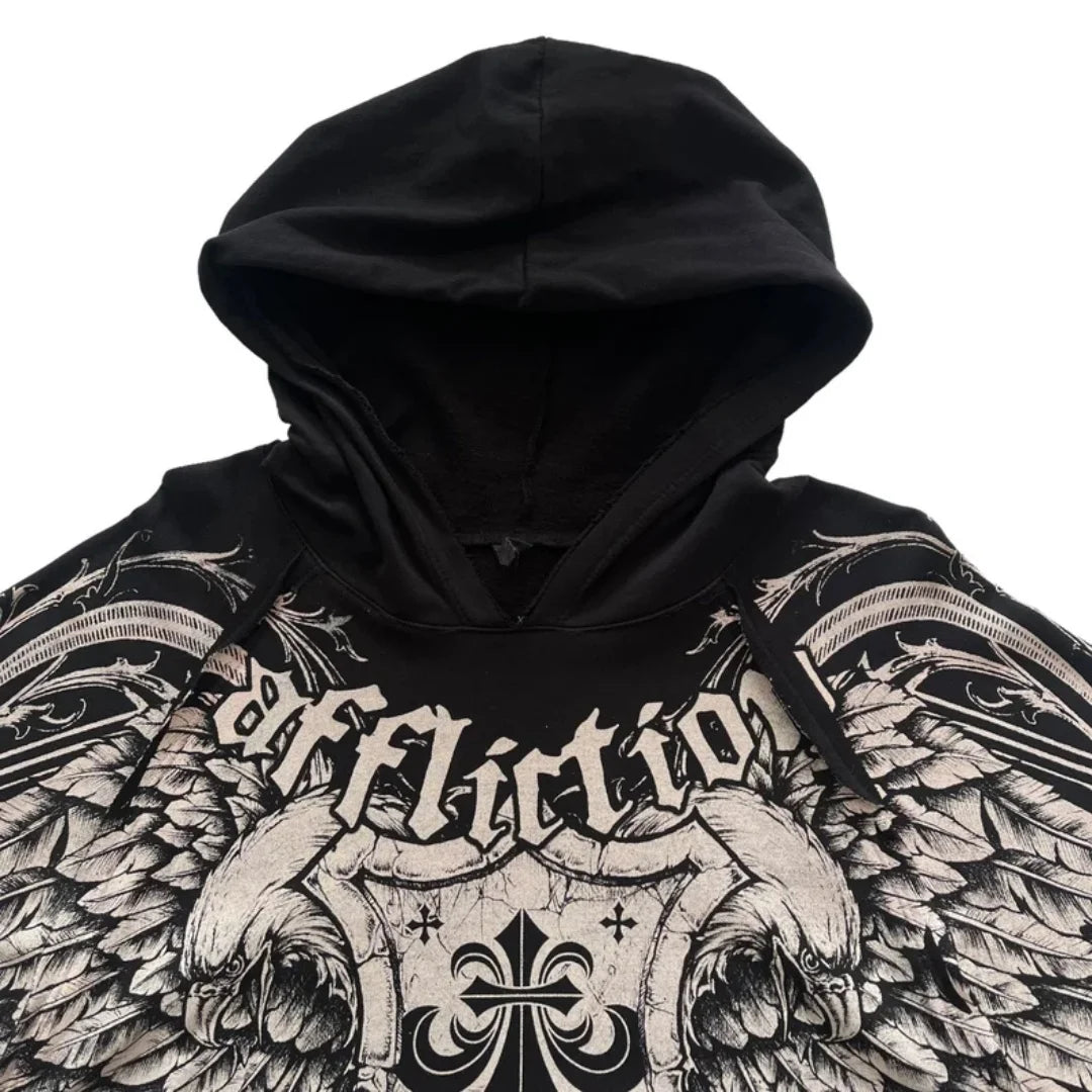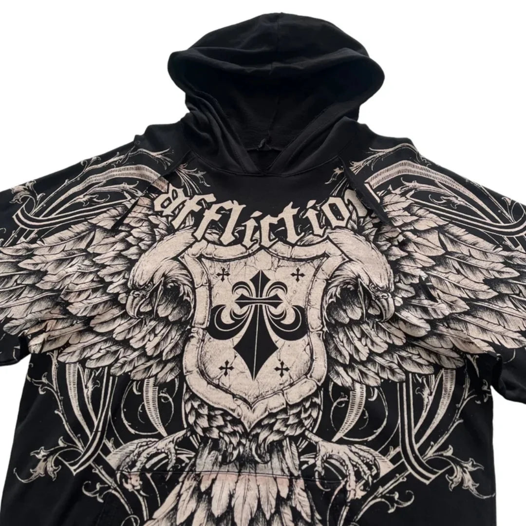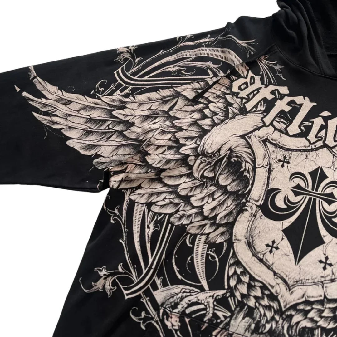 Zwarte Affliction Rock Hoodie met Adelaar en Vleugels