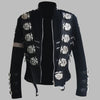 Zwarte Fluwelen Gothic Jas met Metalen Versieringen Steampunk Heren