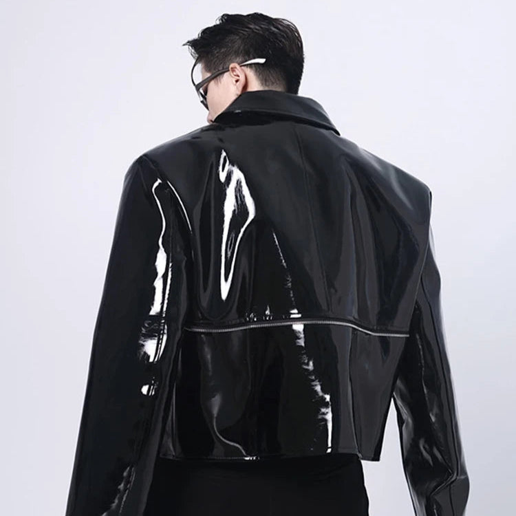 Zwarte Gelakte Unisex Jas in Cyberpunk Stijl