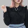 Zwarte Gotische Blouse met Kantkraag en Jirai Kei Hart