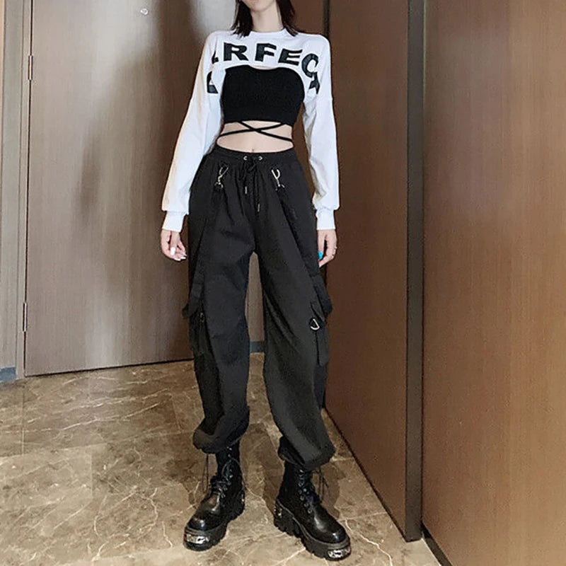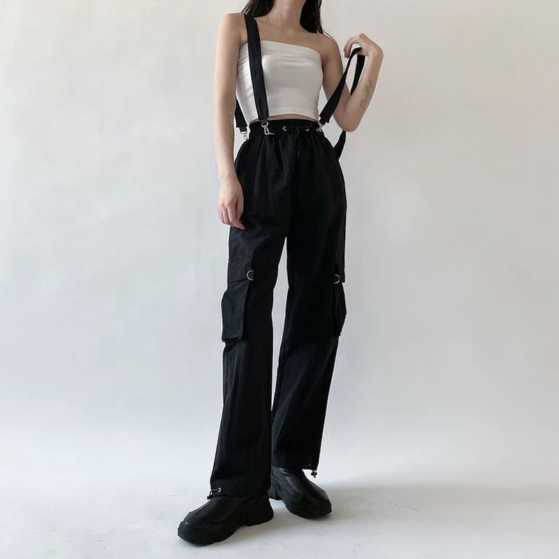 Zwarte Gothic Cargo Broek met Metalen Punk Rock Elementen