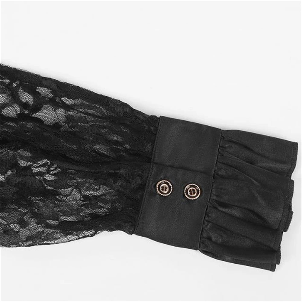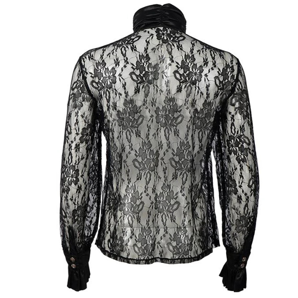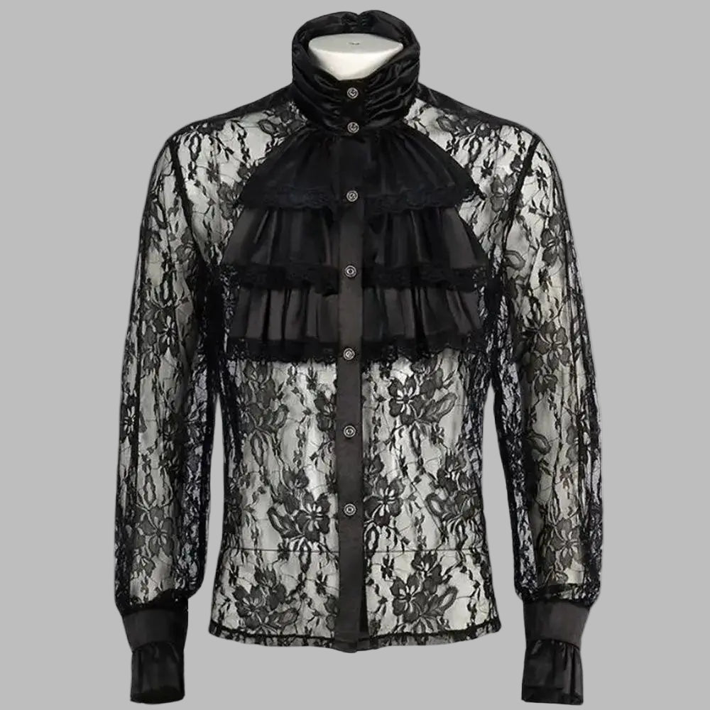 Zwarte Gothic Herenblouse met Kant en Jabot