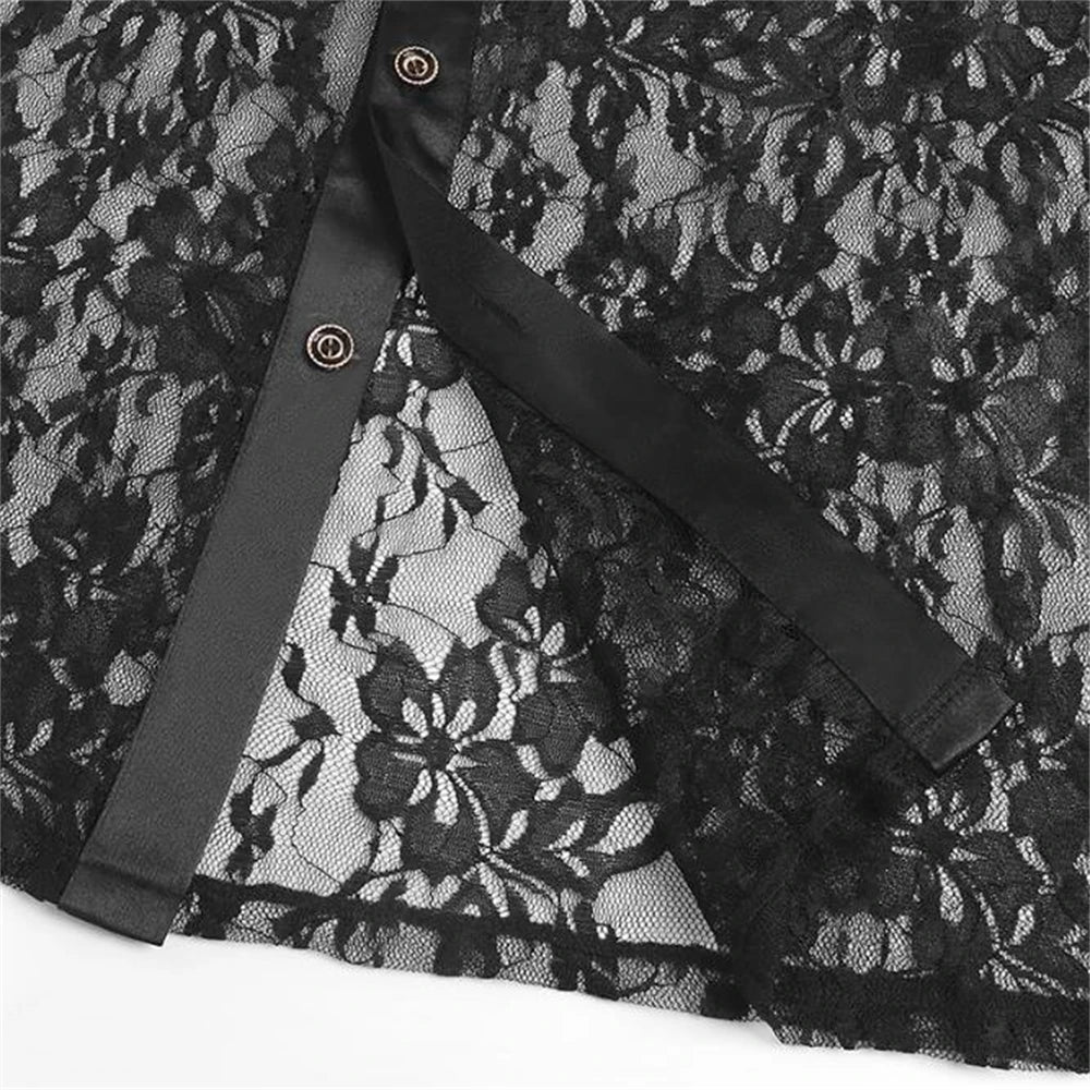 Zwarte Gotische Herenblouse met Kant en Jabot