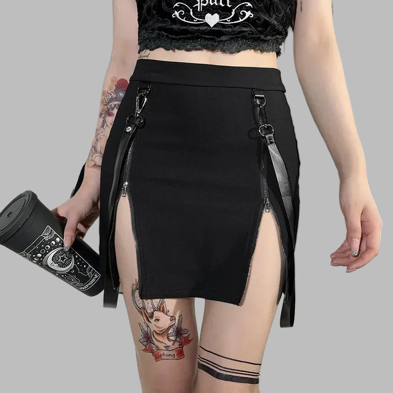Zwarte gothic minirok met ritsen en bandjes Bekijk opties