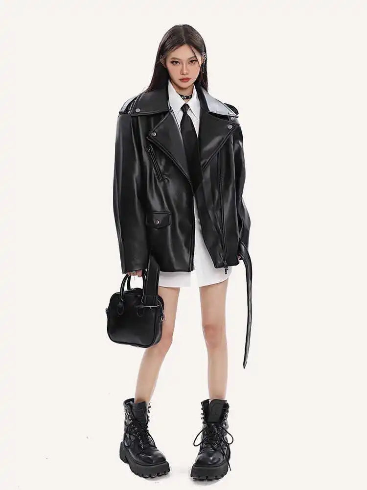 Zwarte Gothic Oversized Lange Vintage Leren Damesjas Bekijk opties
