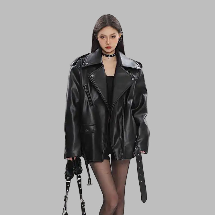 Zwarte Oversized Gotische Lange Vintage Leren Damesjas