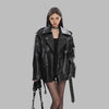 Zwarte Gothic Oversized Lange Vintage Leren Damesjas