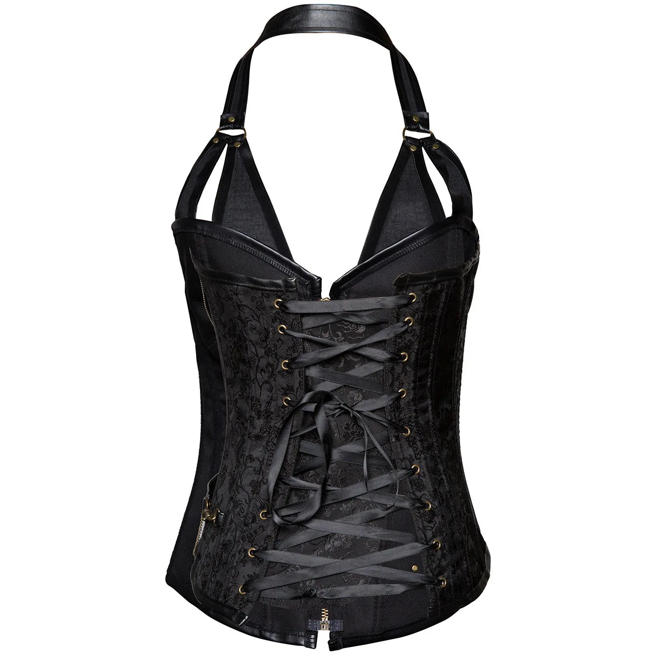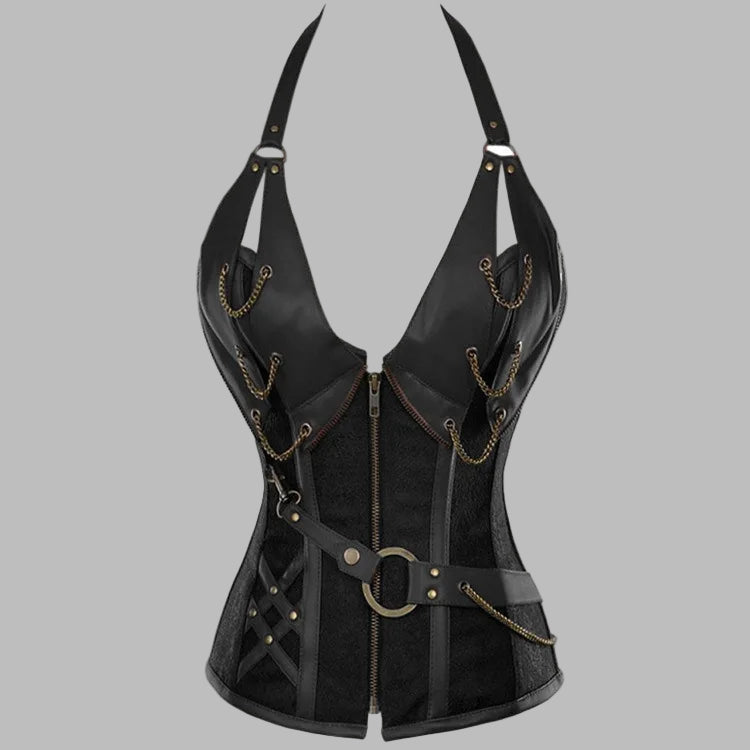 Zwarte Gothic Punk Korset met Kettingen en Leren Details Bekijk opties