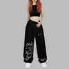 Zwarte Gotische Rock Broek met Teksten Oversized Jogging Grunge