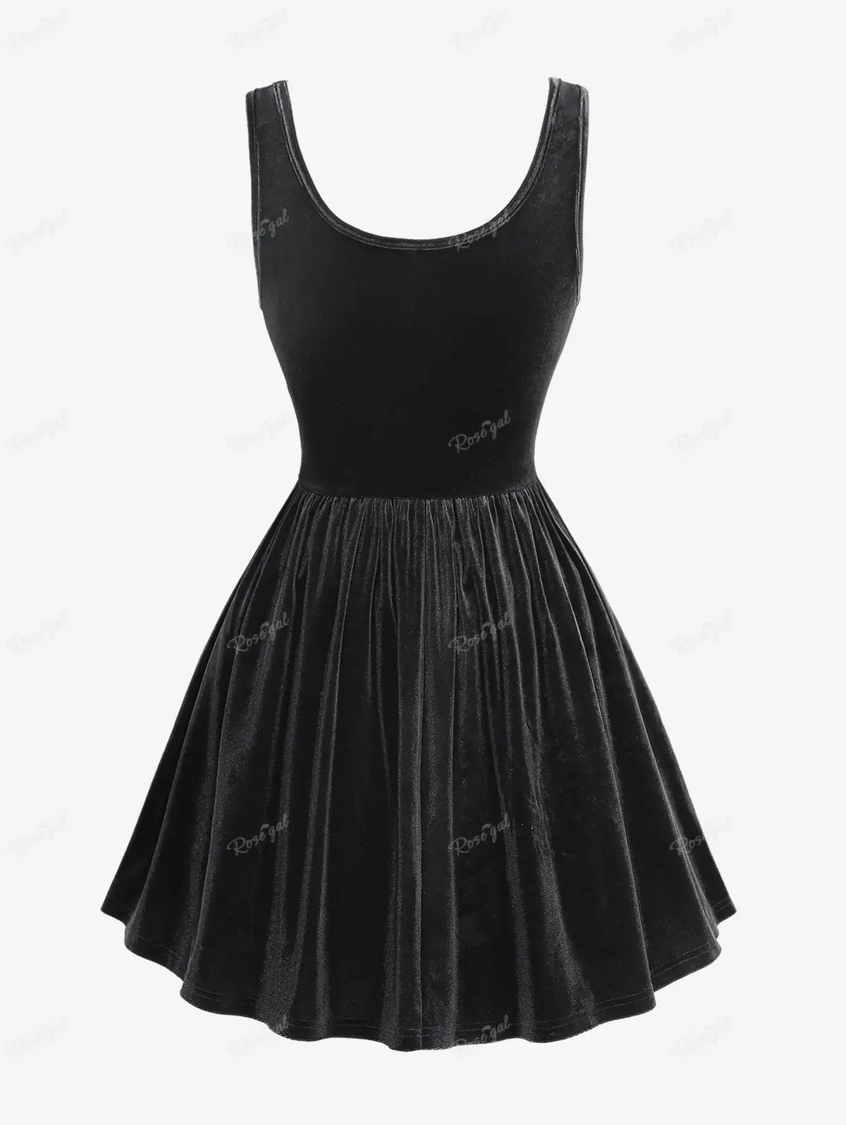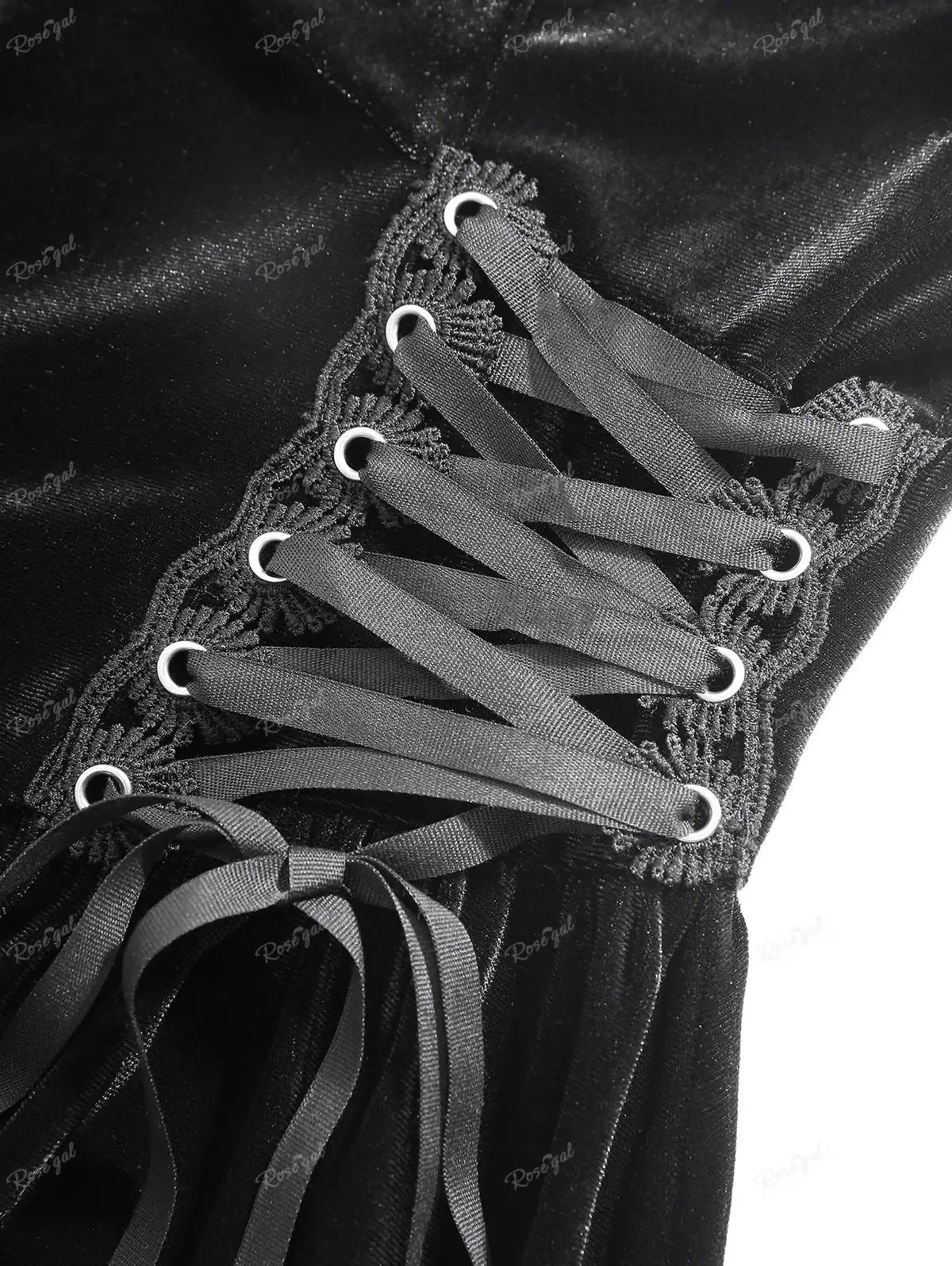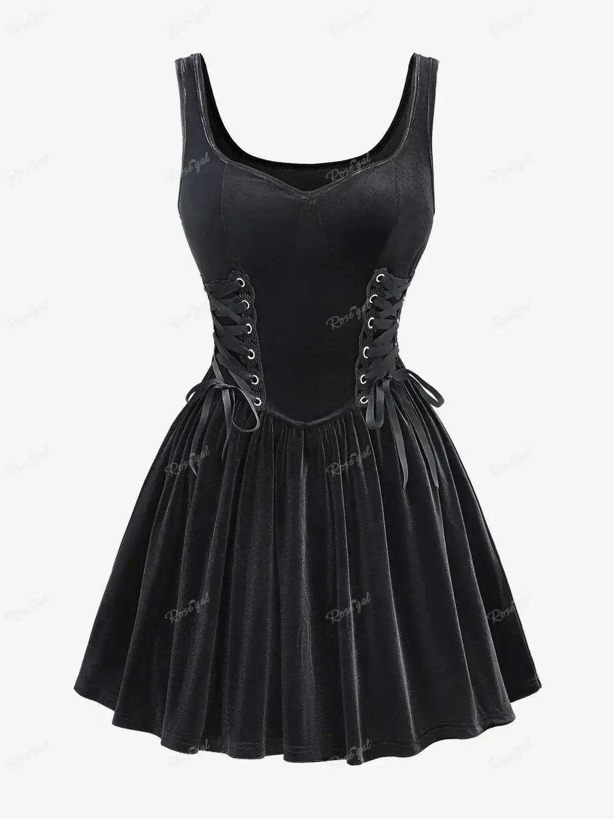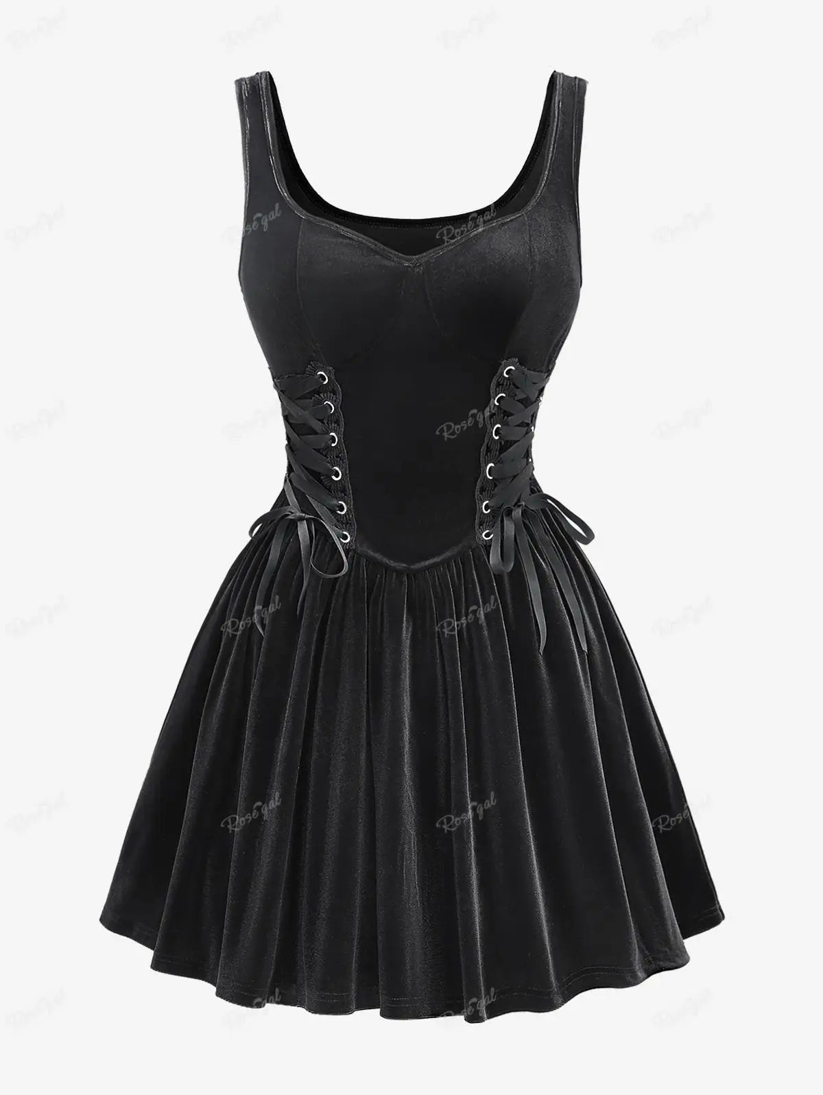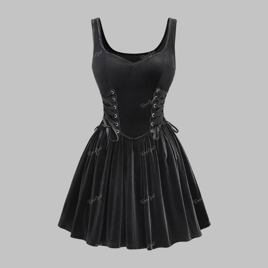 Zwarte gotische Rock-jurk met korset en uitlopende rok