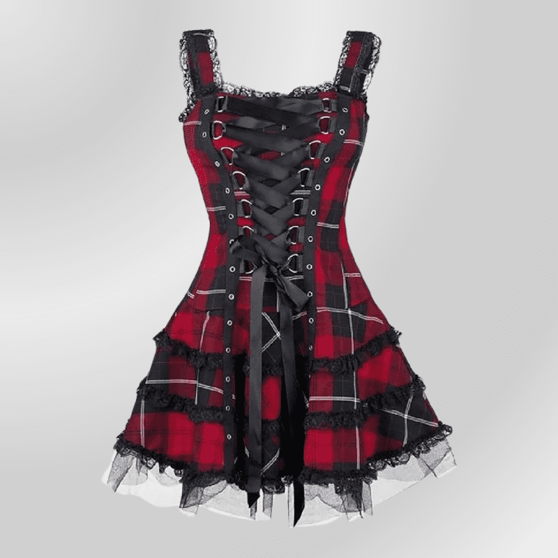 Zwarte gothic rockjurk met Schotse ruit Bekijk opties
