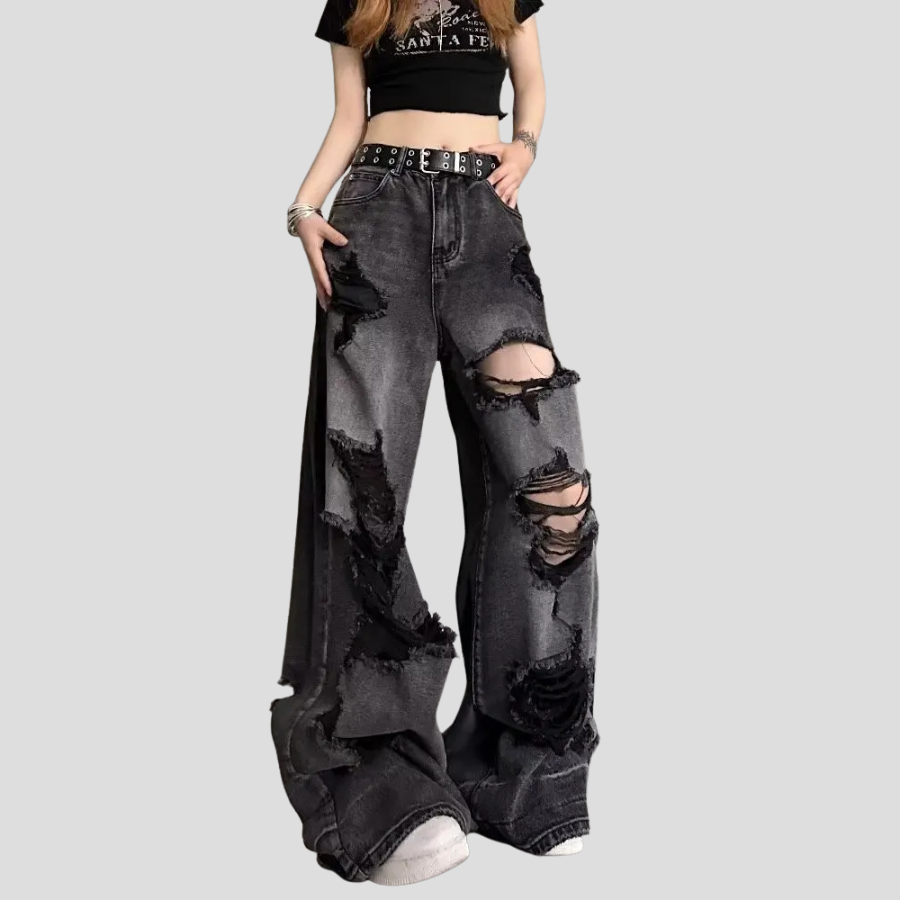 Dames Oversized Zwarte Versleten Grunge Jeans