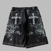 Zwarte Jeansshorts Metal met Zilveren Kruisen en Ornamenten