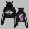 Zwarte Jirai Kei Hoodie met Hoorns HUNTRX Demon Hunters Crop