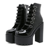 Zwarte Lakleren Dames Gothic Platformlaarzen Metal