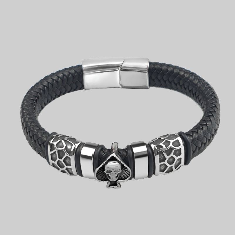 - Materiaal: zorgvuldig geweven zwart ecologisch leer, roestvrij staal (duurzaam en glanzend)