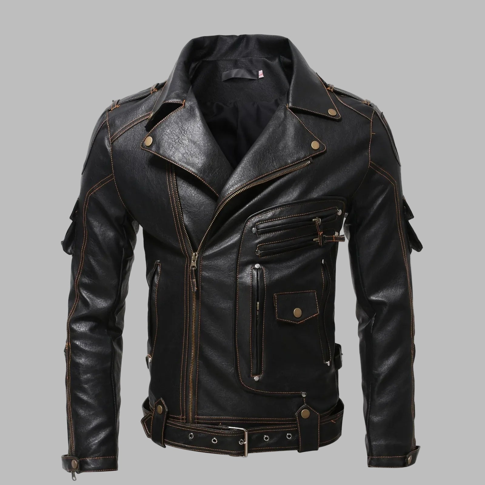 Zwarte Leren Gothic Punk Heren Motorjas met Studs en Riemen Bekijk opties