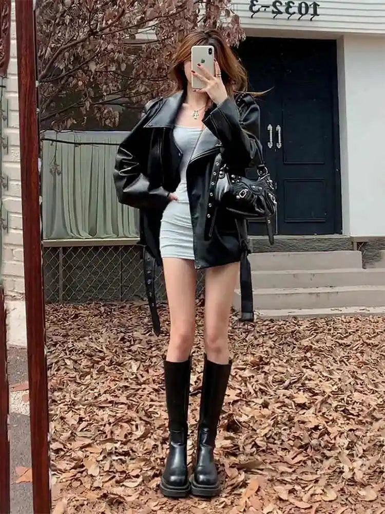 Zwarte leren oversized goth Punk Metal bikerjack Bekijk opties