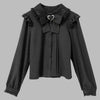 Zwarte Lolita Jirai Kei Blouse met Strik en Kanten Kraag
