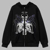 Zwarte Metalen Hoodie met Gevleugeld Skelet op Capuchon