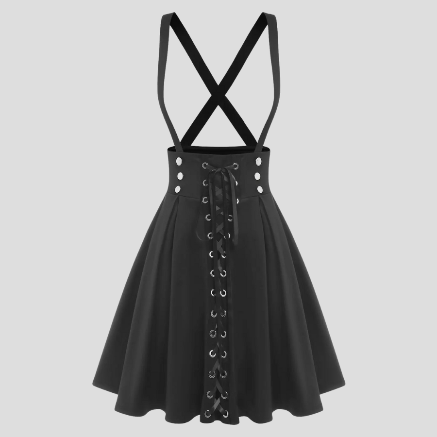Zwarte Metalen Rok met Bretels en Korsetvetering