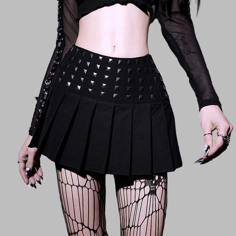 Zwarte Mini Rok Met Studs Geplooid Grunge Dames