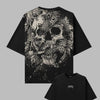 Zwarte Oversized T-shirt met Schedel en Rozen