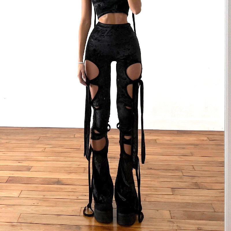 • Unieke Details: Details zoals "Hollow Out," vintage en bandage voegen een artistieke dimensie toe aan deze gothic broeken. Deze elementen creëren een visueel meeslepende esthetiek, terwijl ze het donkere karakter van de broek benadrukken.