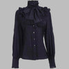 Zwarte Punk Goth Blouse met Kantkraag en Strik