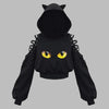 Zwarte Punk Hoodie met Hoorns, Gele Ogen en Vetersluiting