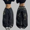 Zwarte Punk Rock Broek met Botanische Borduursels Grunge