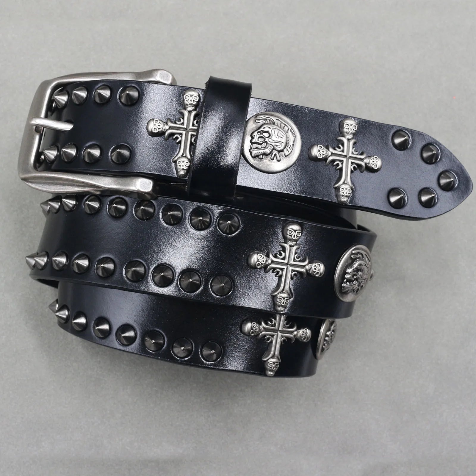 Zwarte Riem met Kruizen en Schedels Metal Rock
