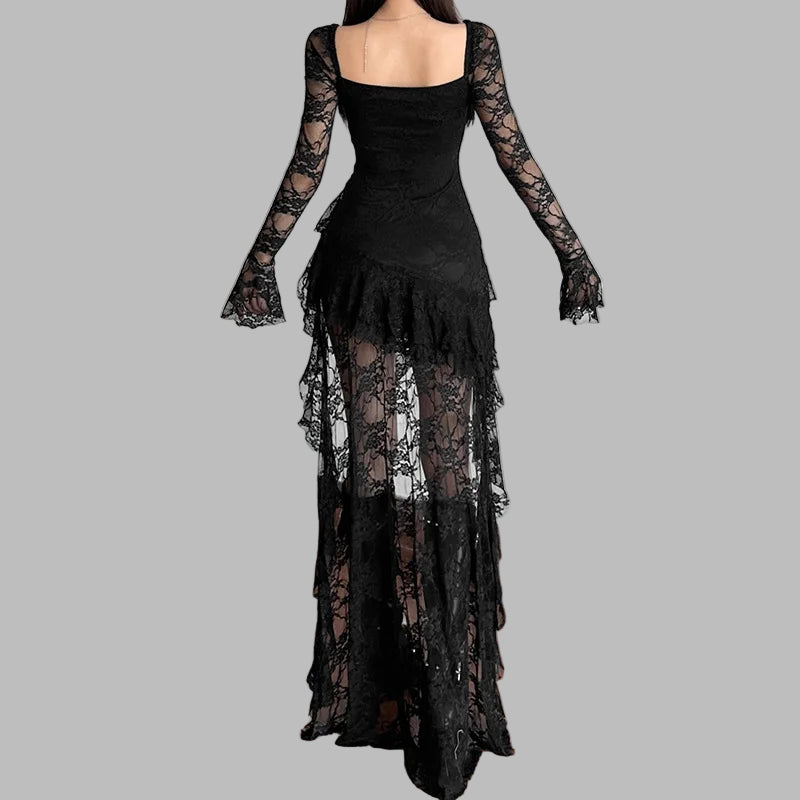 Zwarte Rockjurk met Kant en Asymmetrische Zoom