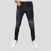 Zwarte Skinny Jeans Metal met Gaten en Vintage Opschriften