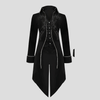 Czarny Płaszcz Steampunk Goth z Ornamentowym Haftem i Guzikami