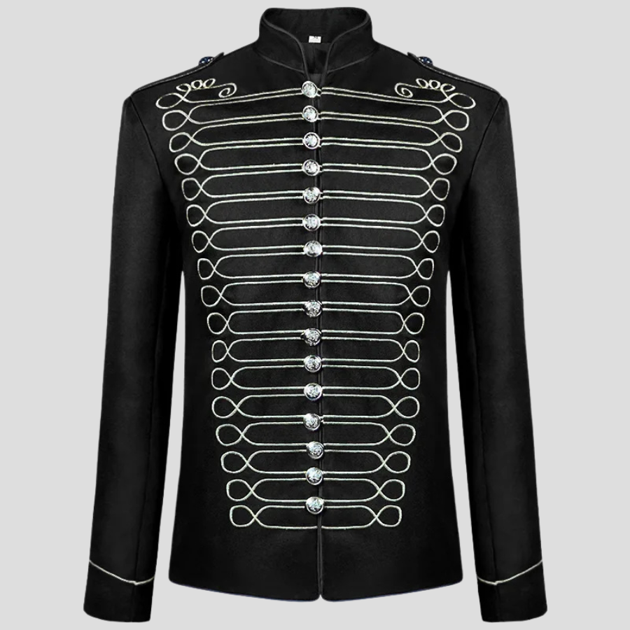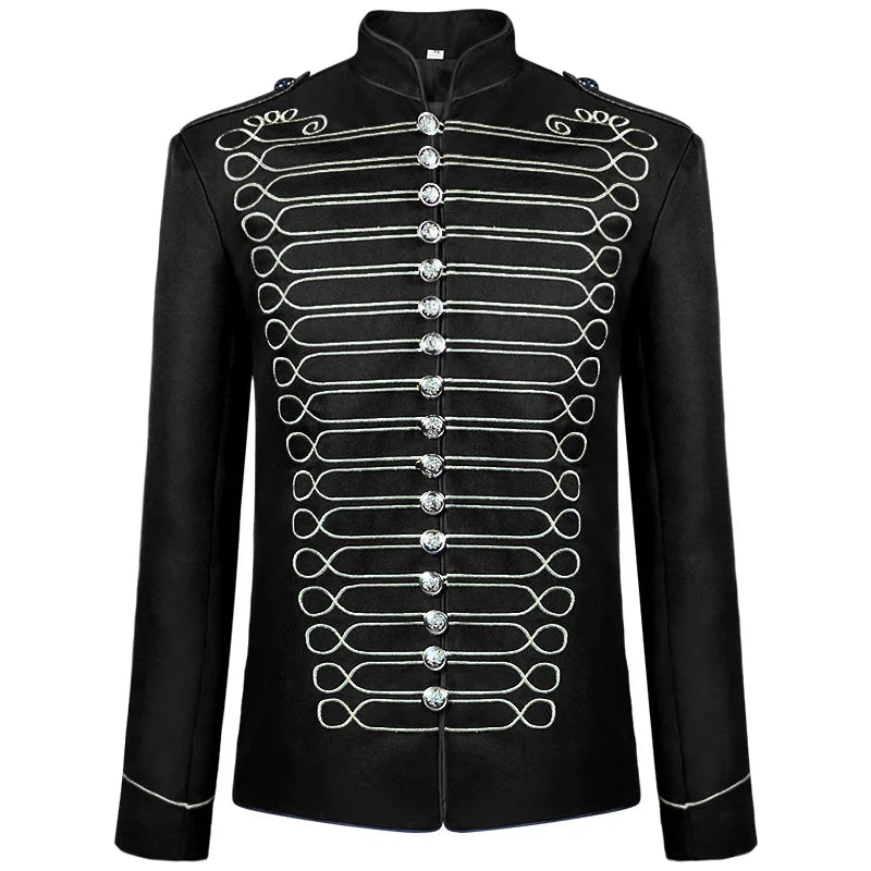 Zwarte Steampunk Jas met Witte Decoratieve Koorden voor Mannen Bekijk opties