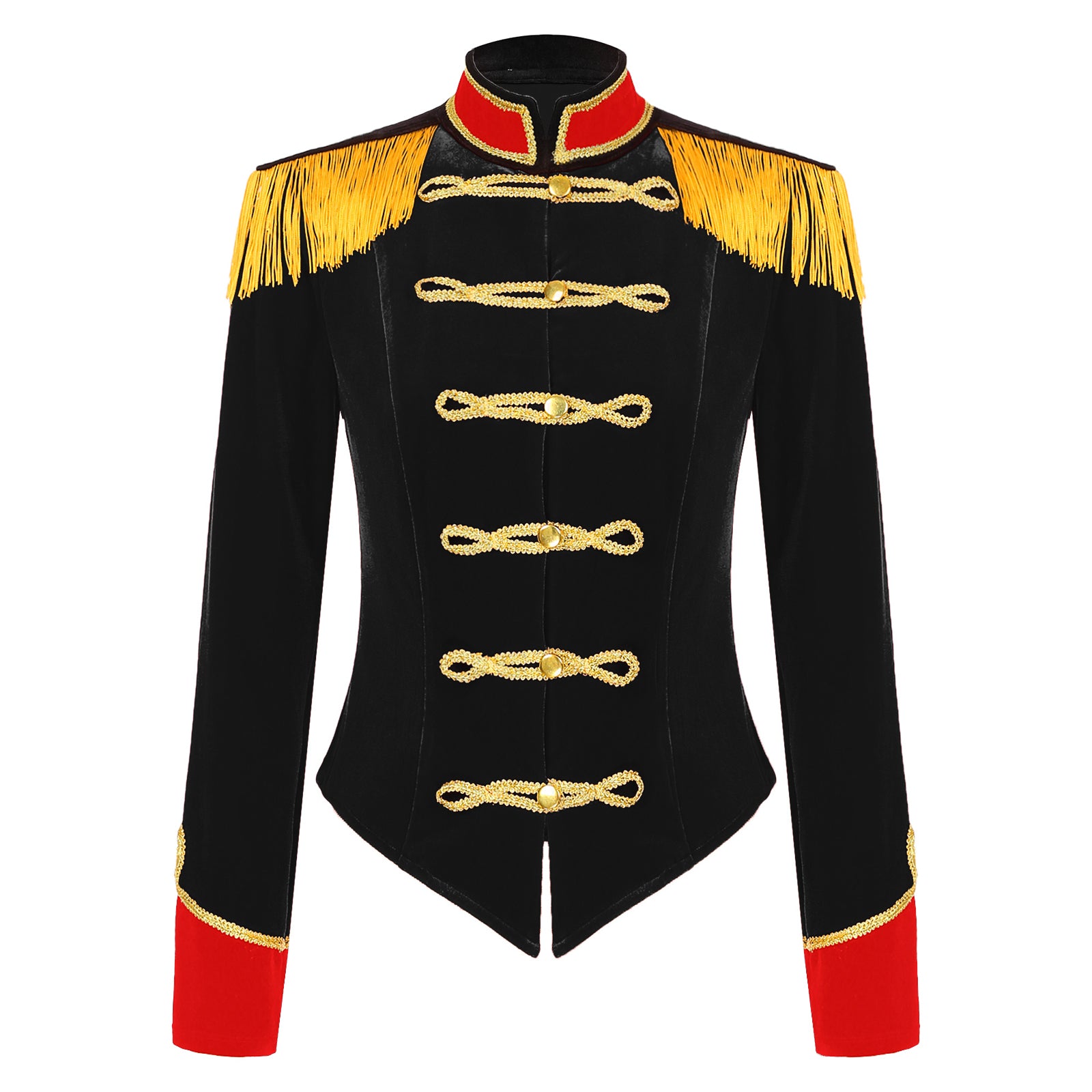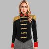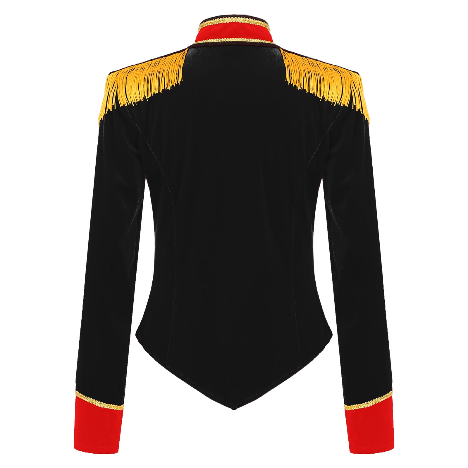 Zwarte Steampunk Militaire Jas met Gouden Details en Franjes Bekijk opties
